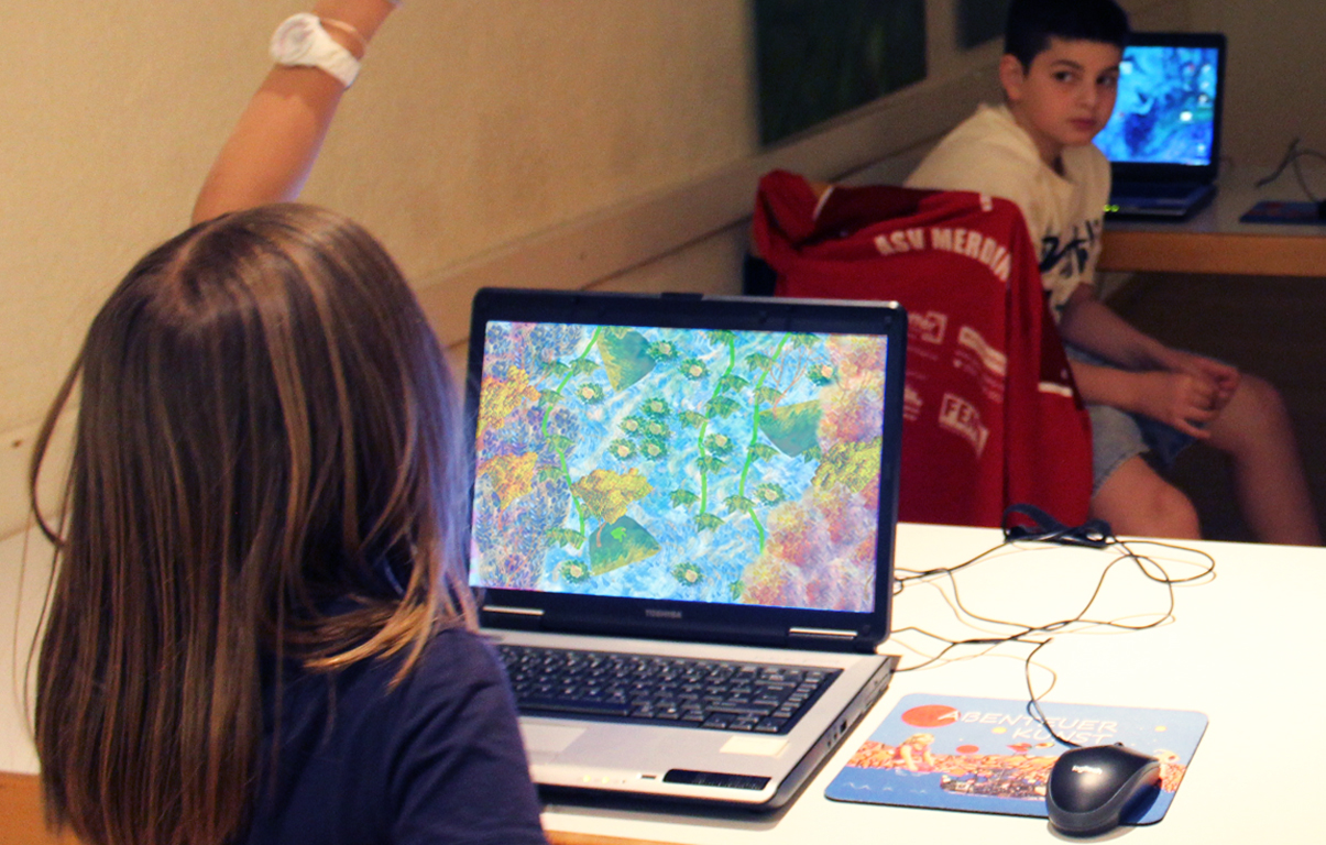 30 Kinder an zwei Tagen haben sich auf die 360-Grad-Erlebnisreise durch die Geschichte und Werke eines der größten Künstler des vergangenen Jahrhunderts Claude Monet gemacht. Modernsten Multimedia Installationen und Projektionen erzeugen in Verbindung mit Musik rauschende Farbwelten und lassen die Gemälde lebendig und spürbar werden.